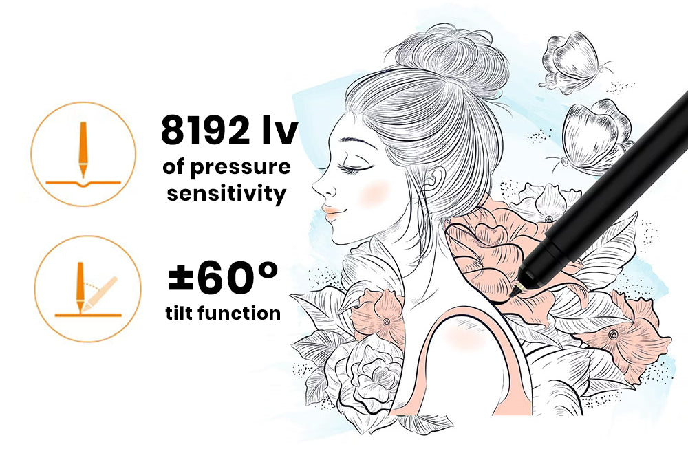 With 8192 levels of pressure sensitivity and ±60° tilt function to help you modify your creation.